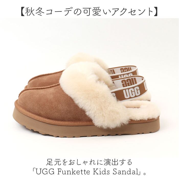 ugg ファンケット サンダル 通販 アグ funkette 1130395K キッズサンダル ムートンスリッパ キッズ レディース スリッパ ジュニア 外履き ムートンサンダル つま先あり 履きやすい 子供 バックストラップ おしゃれ かわいい ブランド