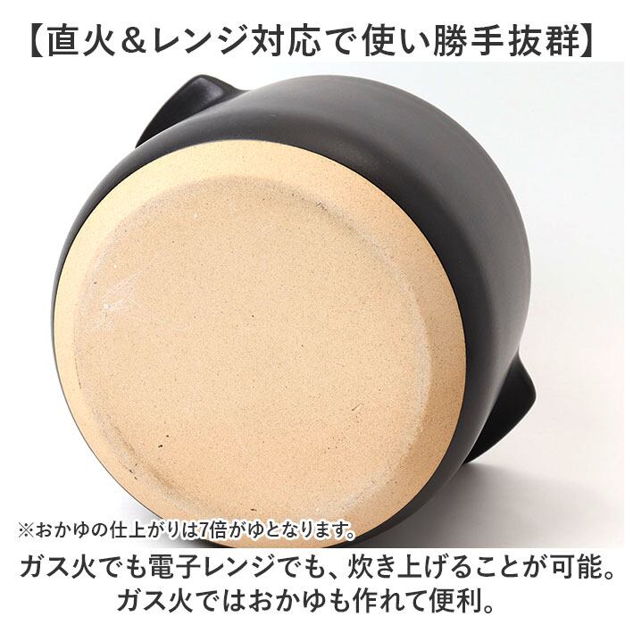 ・ガス火でも電子レンジでも、炊き上げることが可能。ガス火ではおかゆも作れて便利。