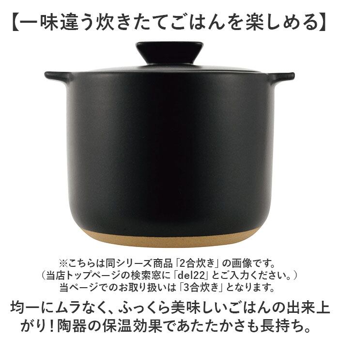 ・ふっくら美味しい炊き上がり!毎日手軽に使える「デリシアス 炊飯土鍋 3合炊き」。
