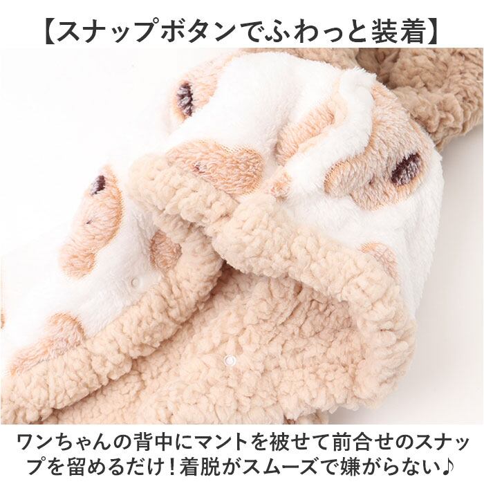・ワンちゃんの背中にマントを被せて前合せのスナップを留めるだけ!着脱がスムーズで嫌がらない♪