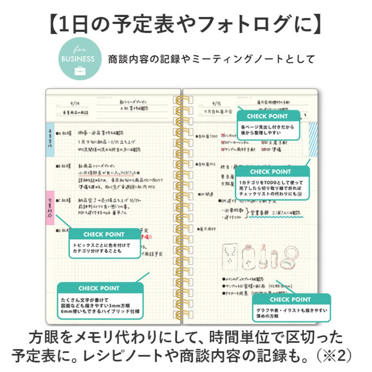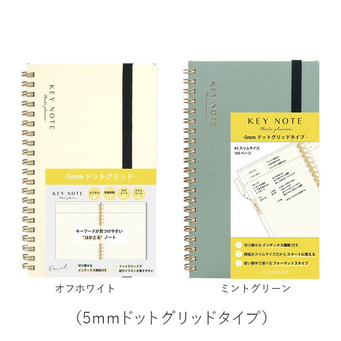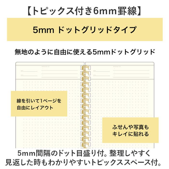 ・5mm間隔のドット目盛り付。整理しやすく見返した時もわかりやすいトピックススペース付。
