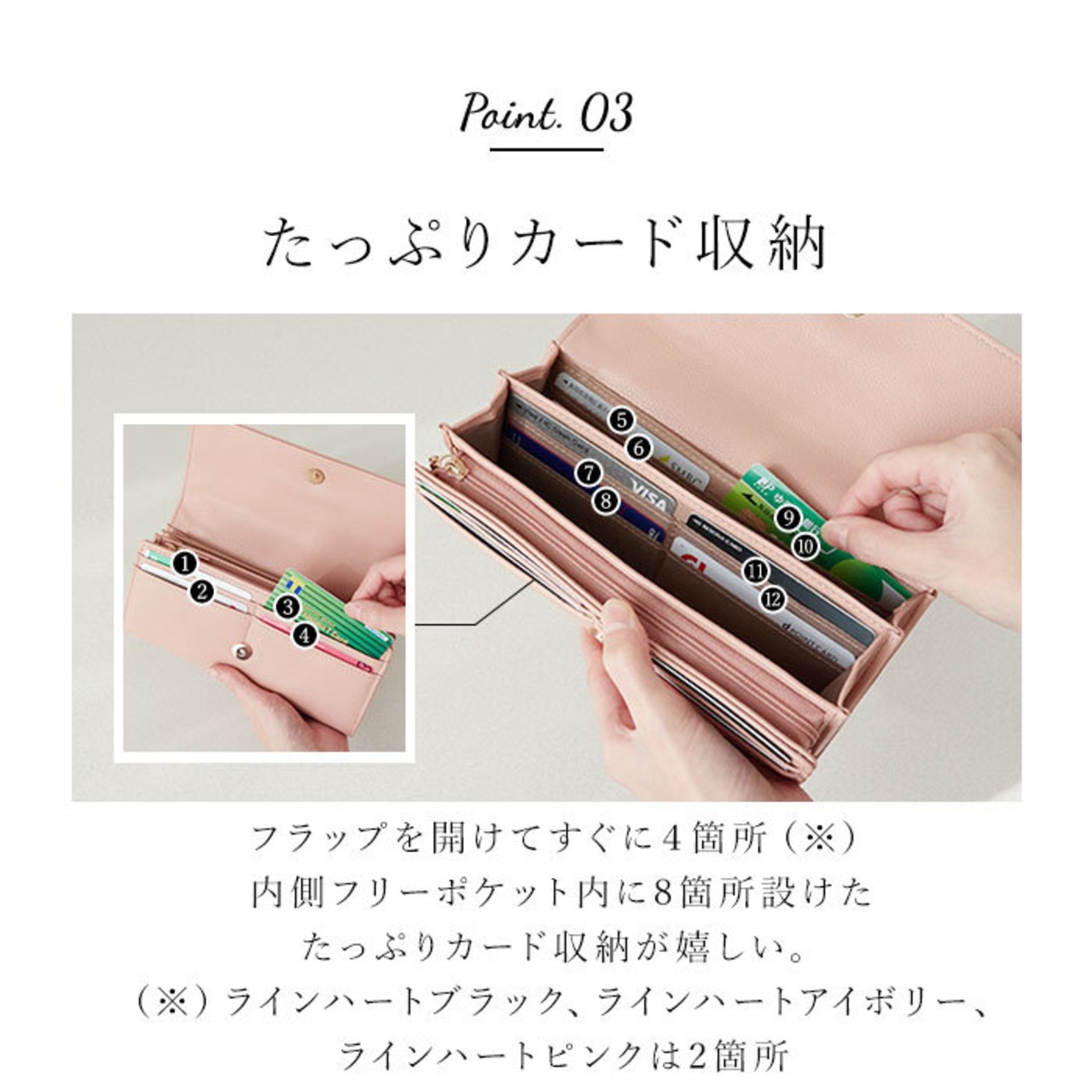 ・カードポケットがたっぷり。クレジット・キャッシュ・ポイントカードもひとまとめ。