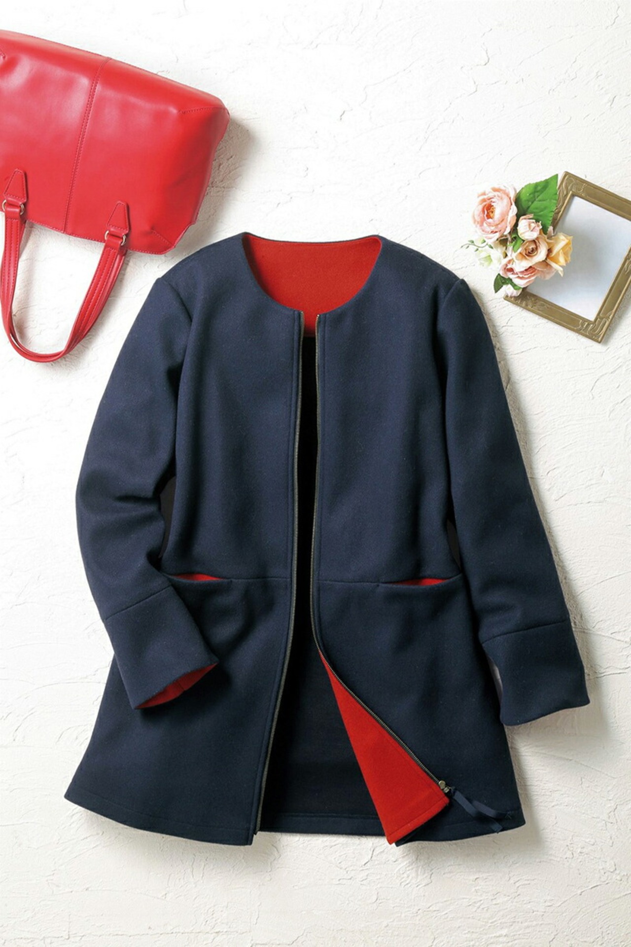 ・暖かみのある厚手フェルトのようなウール調素材が肌当たりを実現。