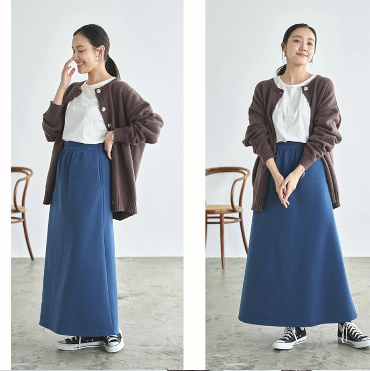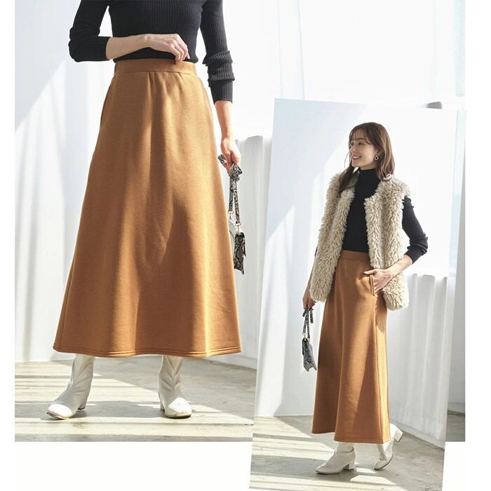 ・裏起毛であったか&Aラインフレアできれいなシルエット。
