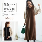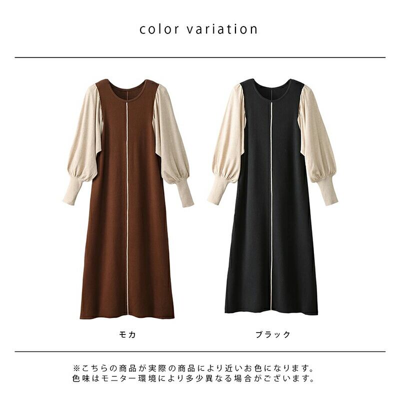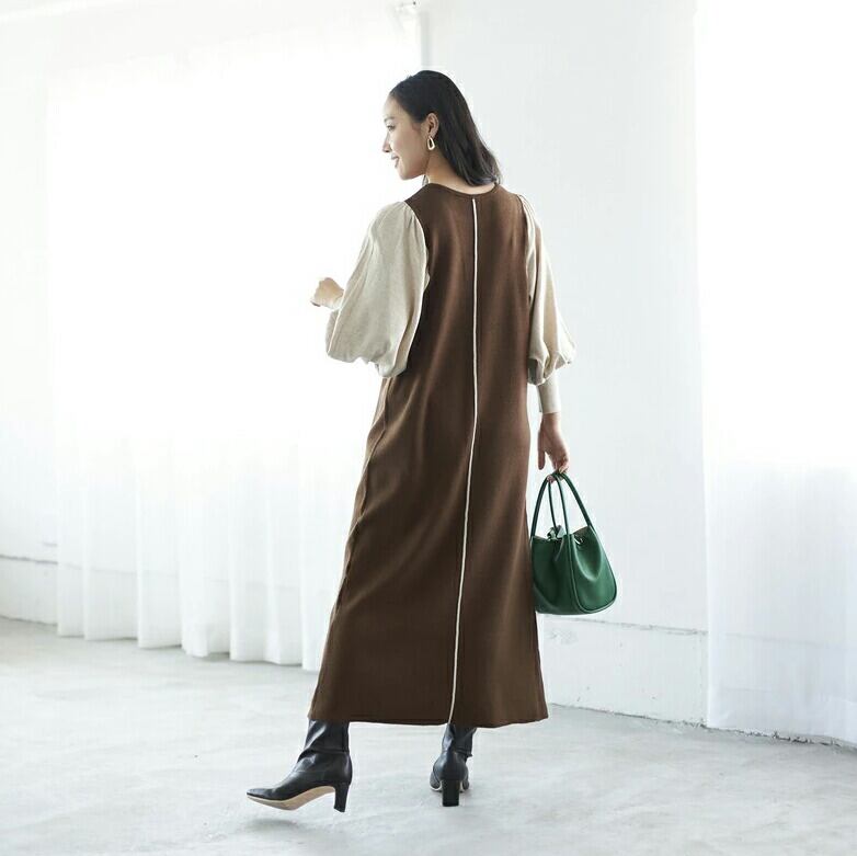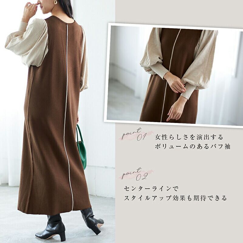 ・配色ニットで切替された、ボリュームのあるバルーンスリーブがポイントのワンピース。