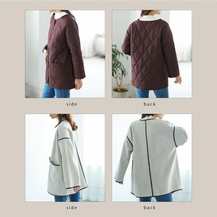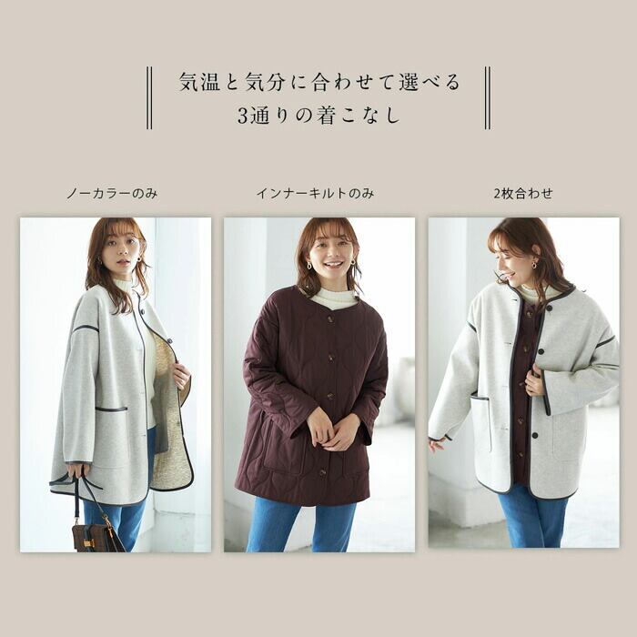 ・インナーキルトコートと、ノーカラーコートがセットになったアウター。