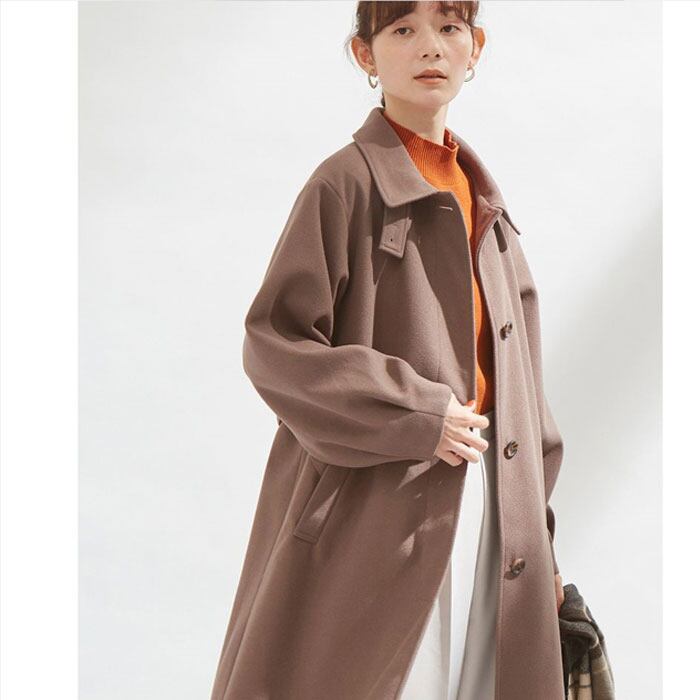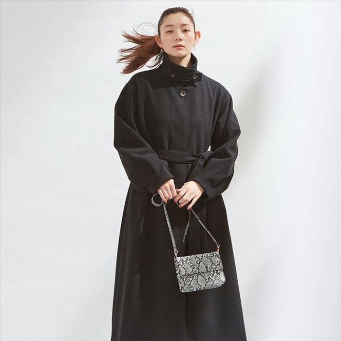 ベルト付きボリューム袖ステンカラーコート
