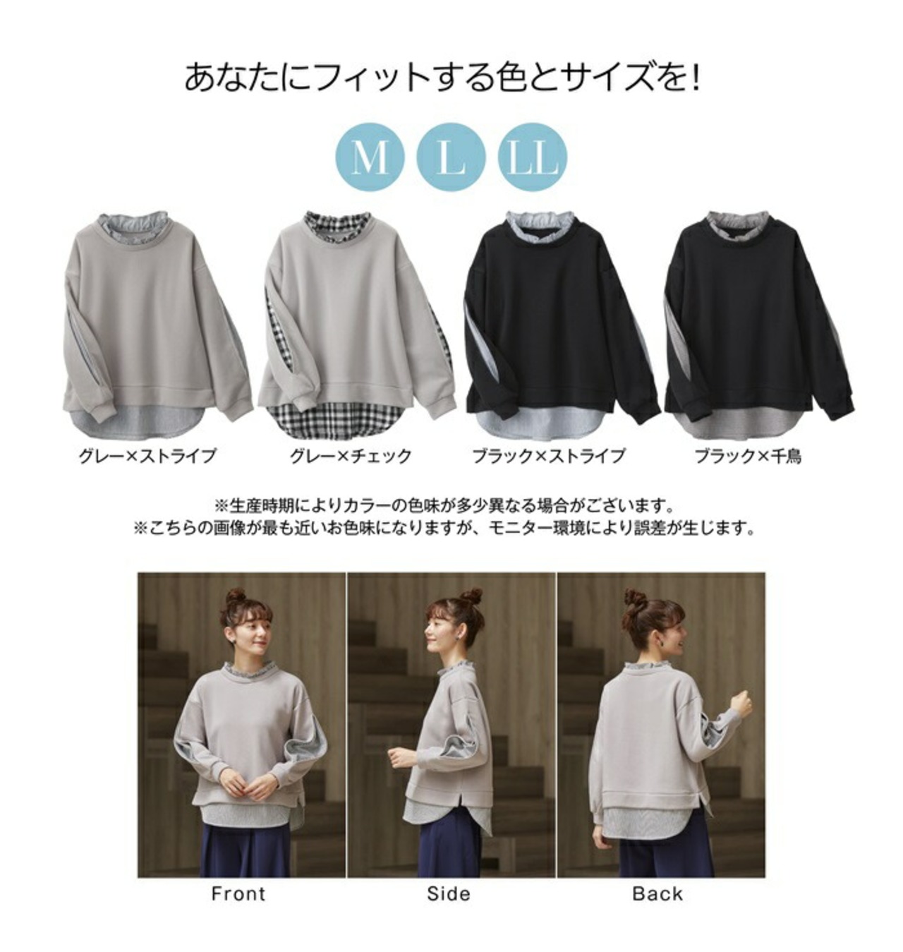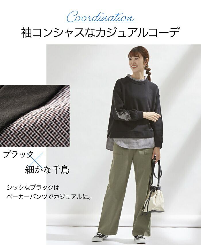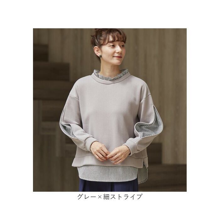 ほっそり魅せるあったか裏起毛重ね着風プルオーバー