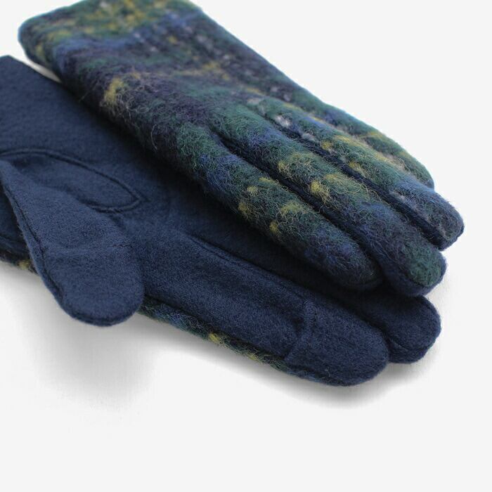 ・シャギー系のタータンチェックに、柔らかなアクリルジャージを合わせたマニッシュな雰囲気のグローブ。