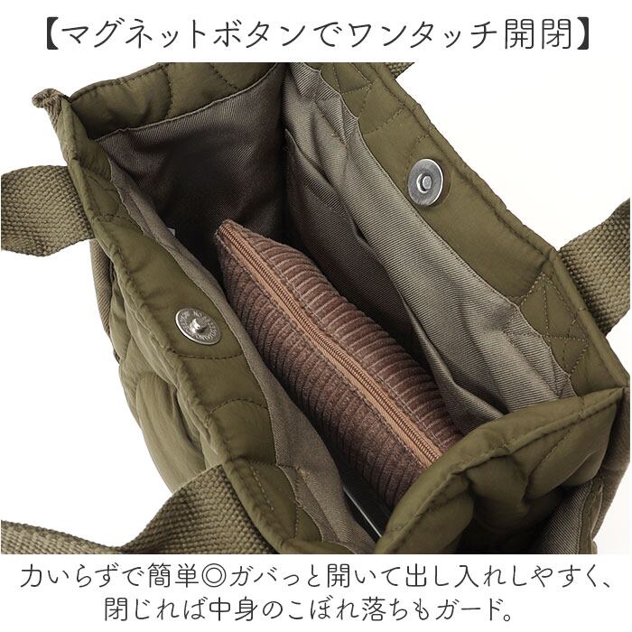 ・中綿を入れ、ふわふわに仕上げたキルティングトート。寒い季節のコーデに素敵にマッチ☆