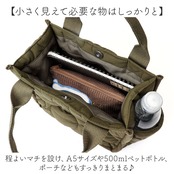 ・程よいマチを設け、A5サイズや500mlペットボトル、ポーチなどもすっきりまとまる♪