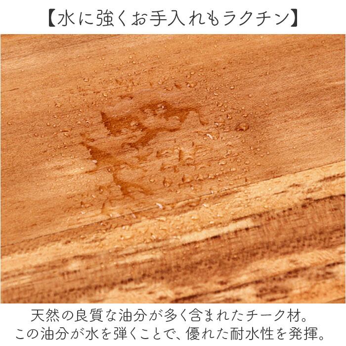 ・天然の良質な油分が多く含まれたチーク材。この油分が水を弾くことで、優れた耐水性を発揮。
