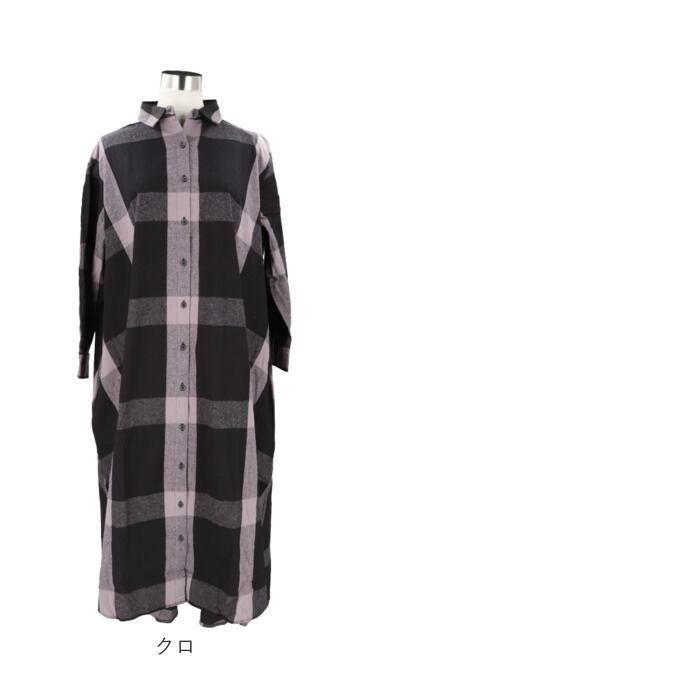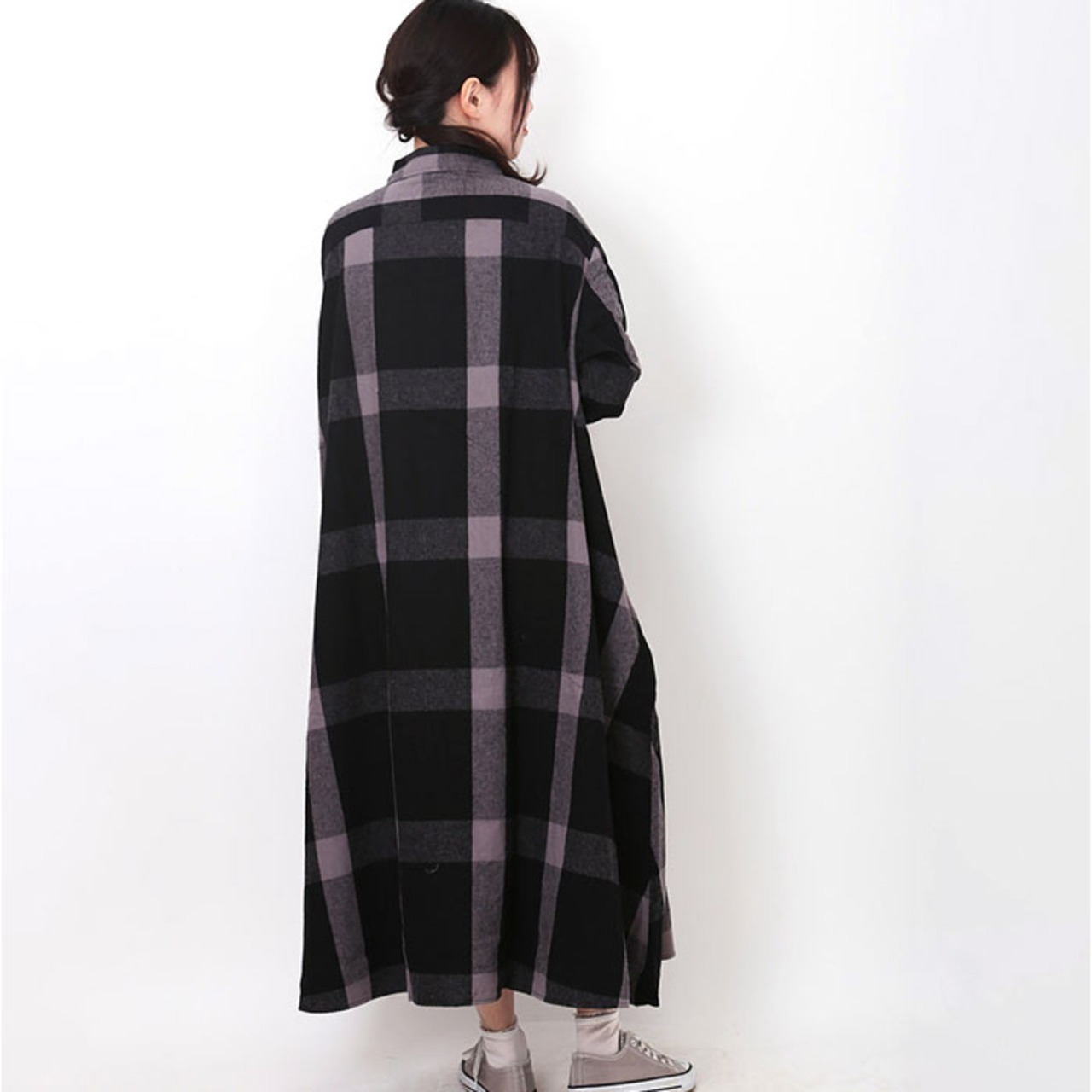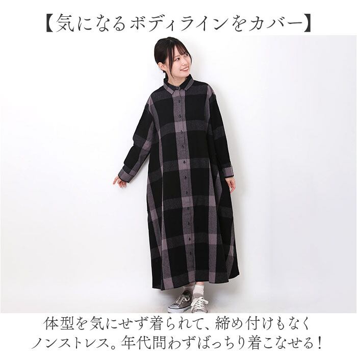 DGY ディージーワイ チェックワンピース レディース 通販 ワンピース チェックワンピ ワンピ ロングワンピース シャツワンピース レディースワンピース ロング ボタン 衿付き 長袖 チェック柄 Aライン ナチュラル ゆったり 体型カバー カジュアル