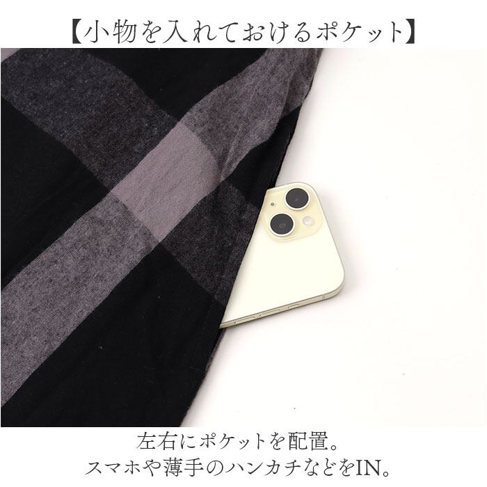 ・左右にポケットを配置。スマホや薄手のハンカチなどをIN。