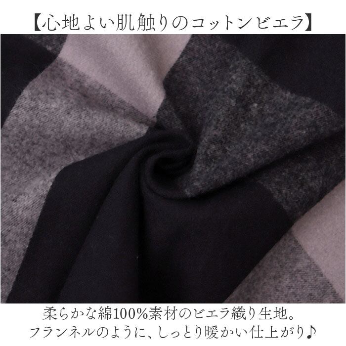・柔らかな綿100%素材のビエラ織り生地。フランネルのように、しっとり暖かい仕上がり♪