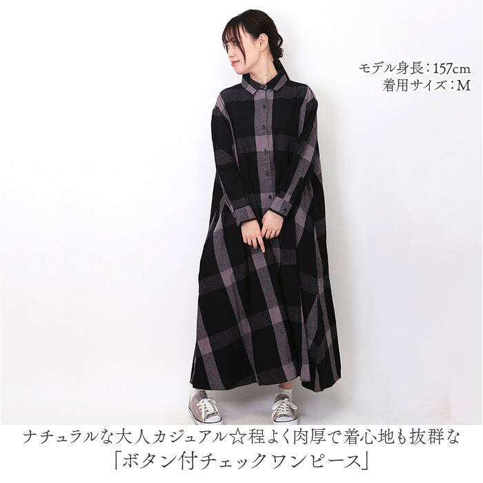 ・ナチュラルな大人カジュアル☆程よく肉厚で着心地も抜群な「ボタン付チェックワンピース」。