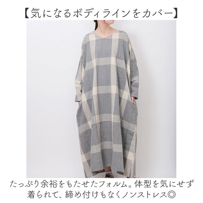・ナチュラルな大人カジュアルデザイン。程よく肉厚で着心地も抜群な「チェックワンピース」。
