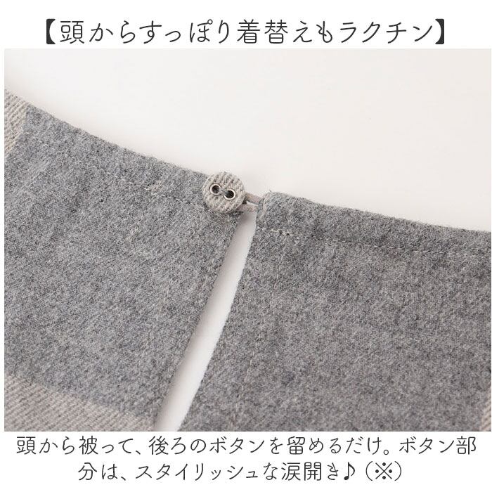 ・頭から被って、後ろのボタンを留めるだけ。ボタン部分は、スタイリッシュな涙開き♪