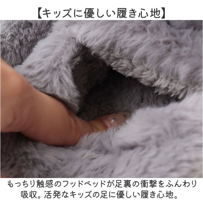 ・もっちり触感のフッドベッドが足裏の衝撃をふんわり吸収。活発なキッズの足に優しい履き心地。