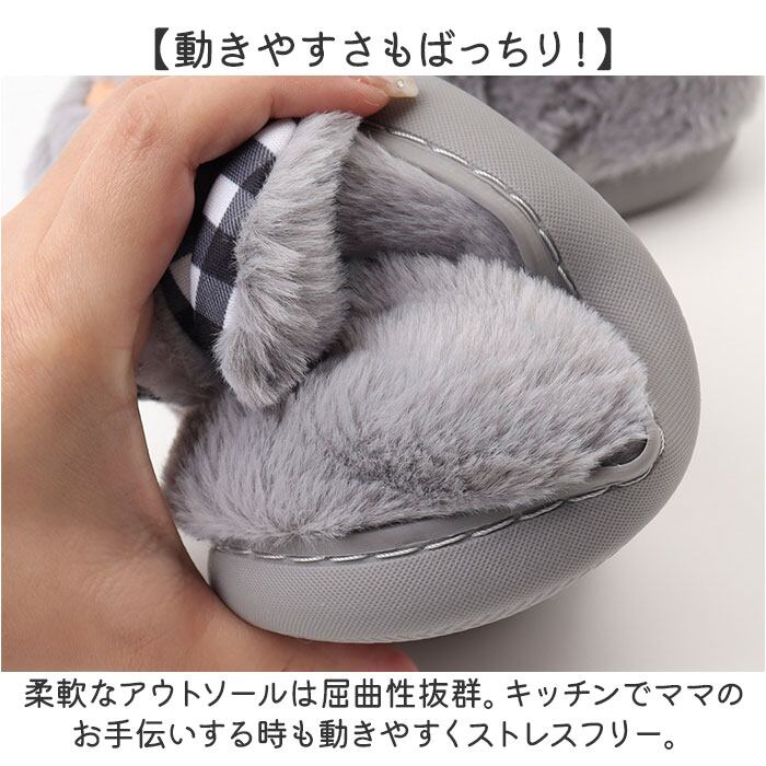 ・かかとやくるぶしまですっぽりと覆うルームシューズタイプだから、足元の温もりを逃がさない♪