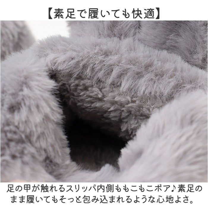 ・足の甲が触れるスリッパ内側ももこもこボア♪素足のまま履いてもそっと包み込まれるような心地よさ。