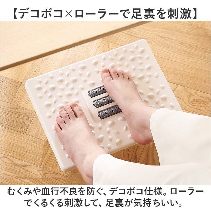 ・むくみや血行不良を防ぐ、デコボコ仕様。ローラーでくるくる刺激して、足裏が気持ちいい。