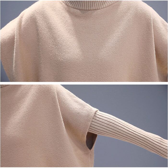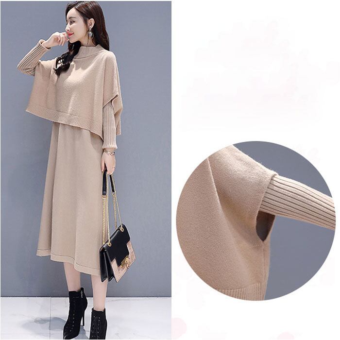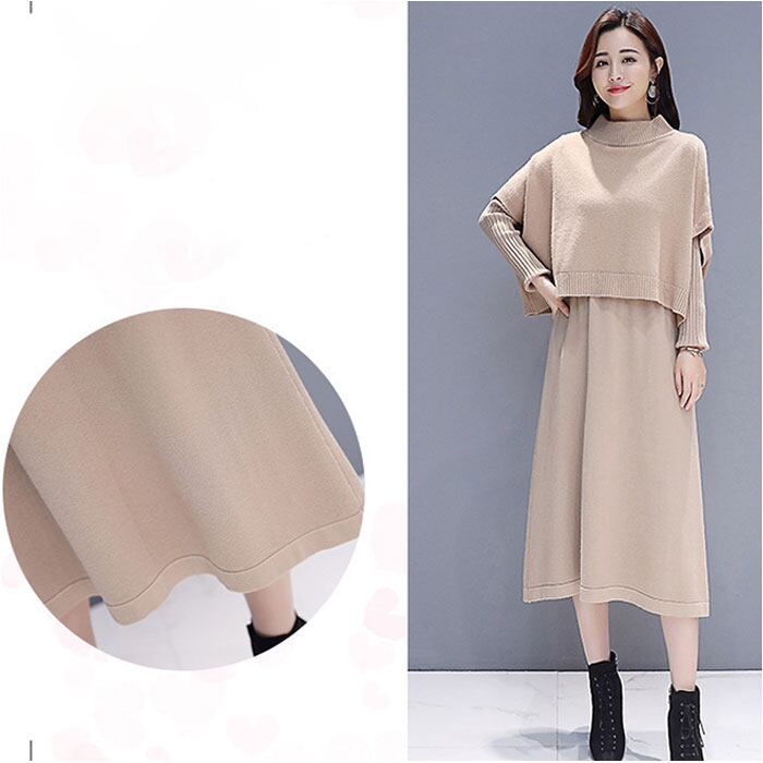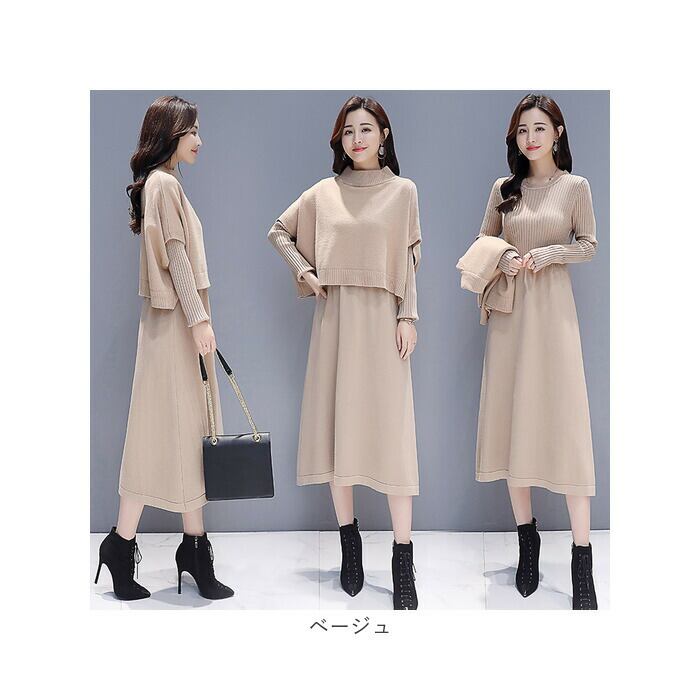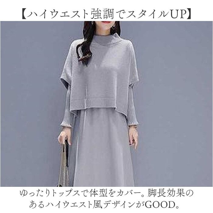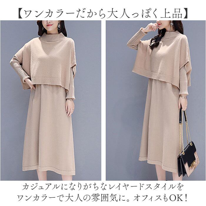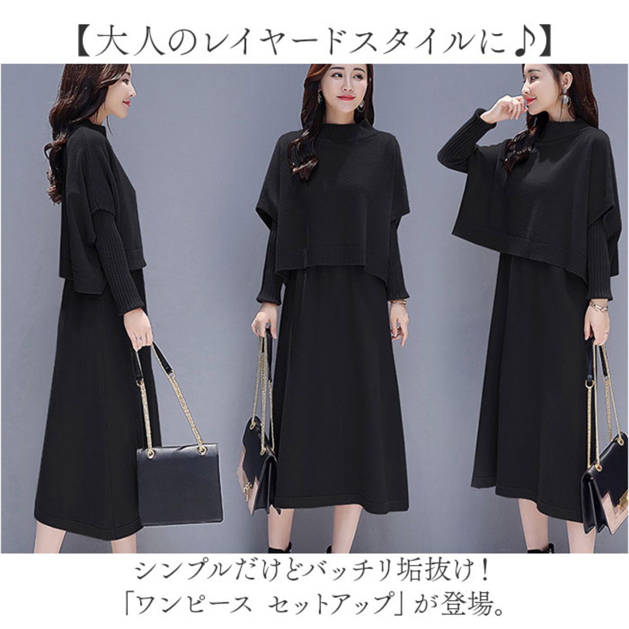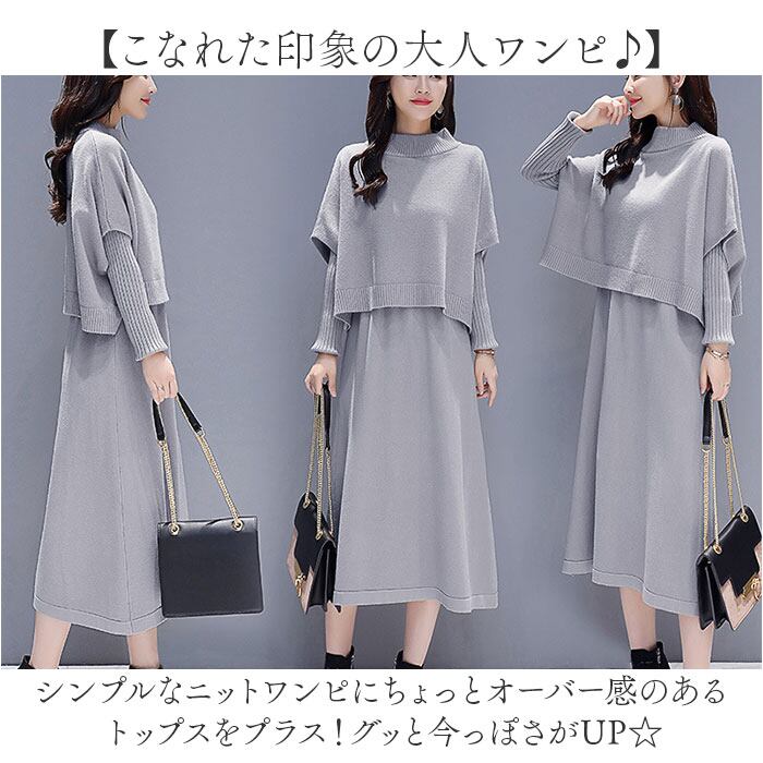 ・シンプルなニットワンピにちょっとオーバー感のあるトップスをプラス!グッと今っぽさがUP☆
