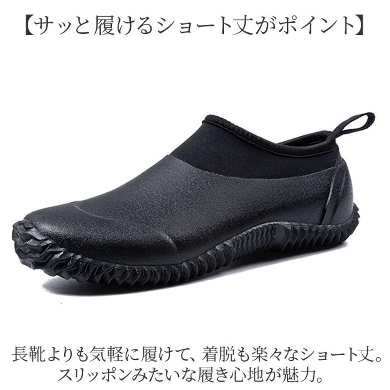 ・長靴よりも気軽に履けて、着脱も楽々なショート丈。スリッポンみたいな履き心地が魅力。