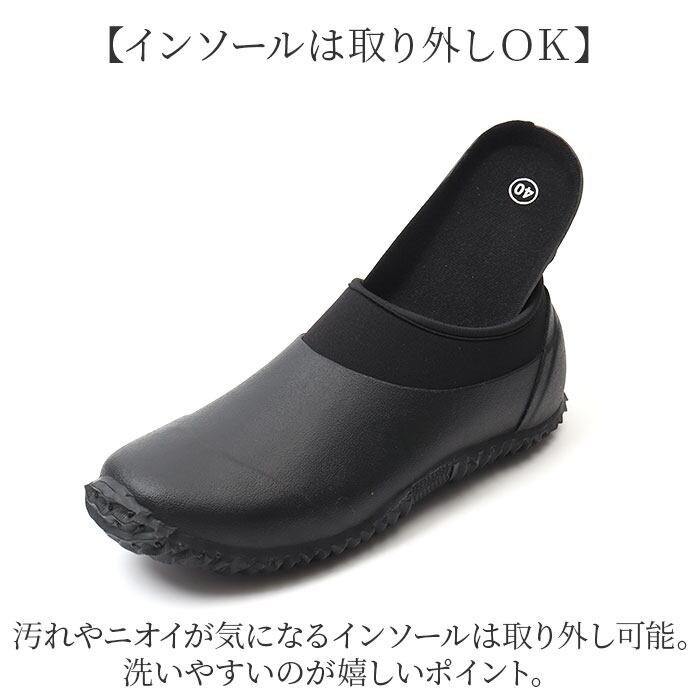 ・水濡れに強いゴム素材を使用。アウトソールはしっかりと滑り止め加工ONして歩行をサポート。