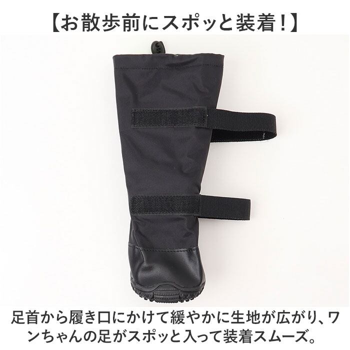 ・長靴のようなハイカットデザインでひじ・膝までしっかりカバー。お散歩後の足拭きの手間が軽減。