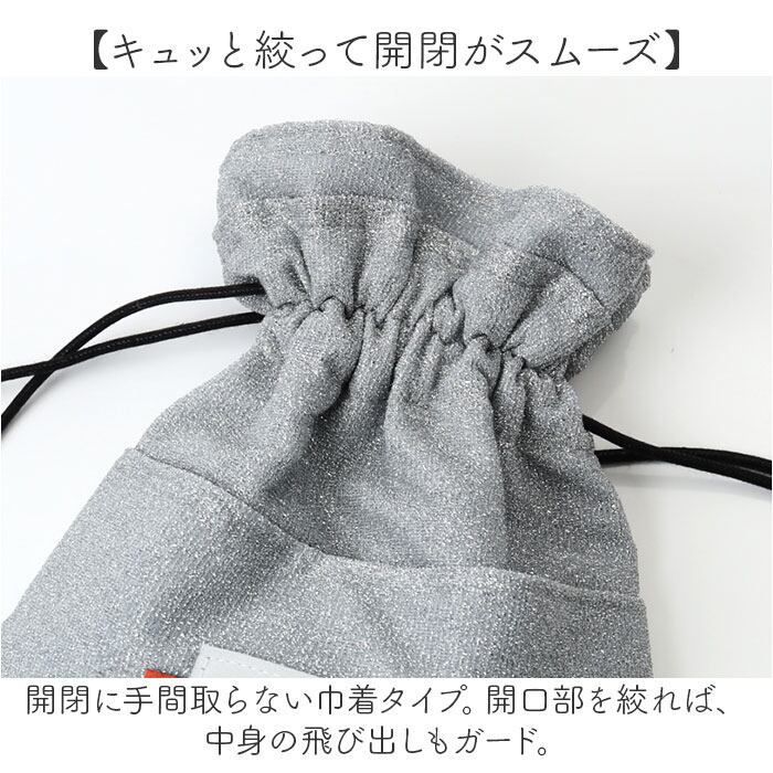 ・開閉に手間取らない巾着タイプ。開口部を絞れば、中身の飛び出しもガード。