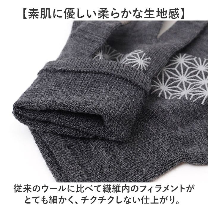 ・従来のウールに比べて繊維内のフィラメントがとても細かく、チクチクしない仕上がり。
