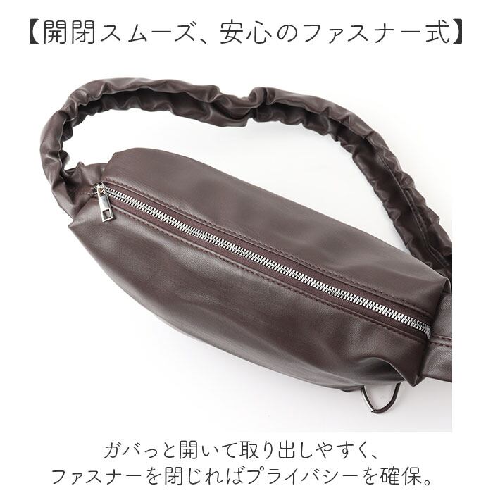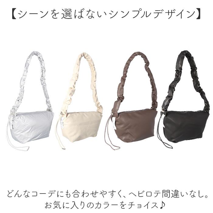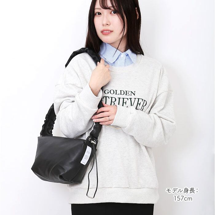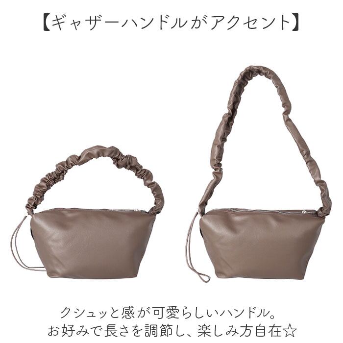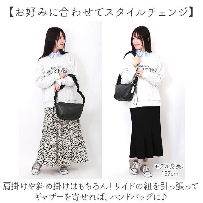 ・肩掛けや斜め掛けはもちろん!サイドの紐を引っ張ってギャザーを寄せれば、ハンドバッグに♪