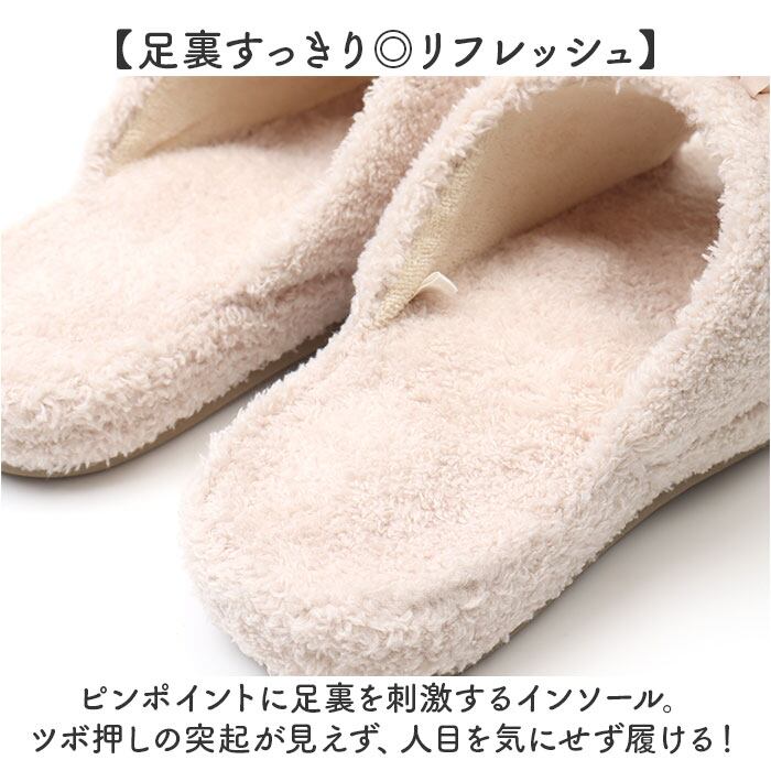 ・ふんわりとしたパイル地仕上げ。優しい肌触りで、長時間履いてもストレスフリー。