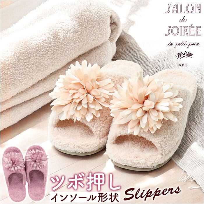 ・足元を華やかに彩りヒミツのツボ押し♪「S.D.S サロンドソワレ ルラシェ スリッパ」。