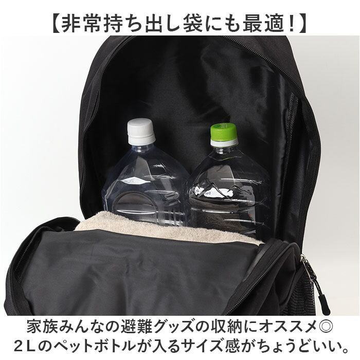 ・家族みんなの避難グッズの収納にオススメ◎2Lのペットボトルが入るサイズ感がちょうどいい。