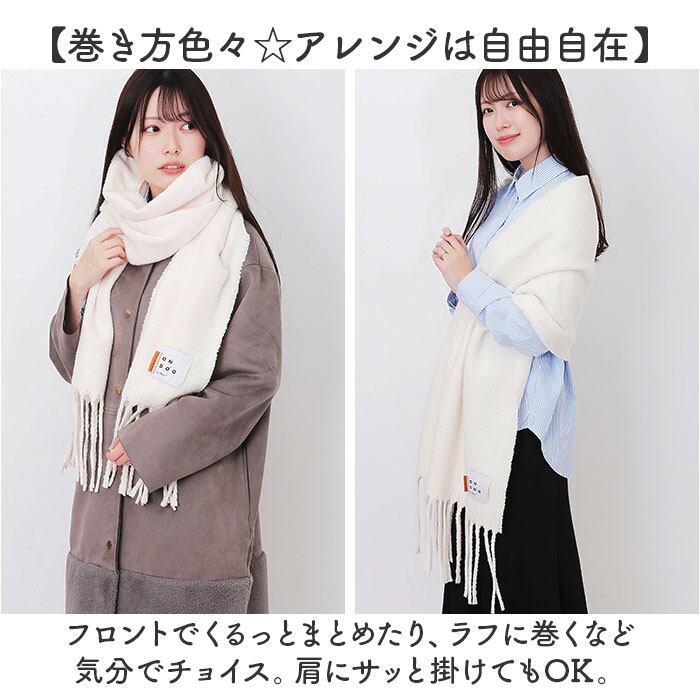 ・フロントでくるっとまとめたり、ラフに巻くなど気分でチョイス。肩にサッと掛けてもOK。