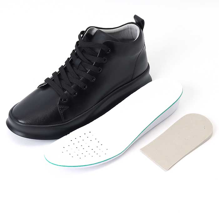 ・身長を盛りつつ、前後差を抑えることで安定した歩行をサポート。底面に凹凸を施し滑りを防止。