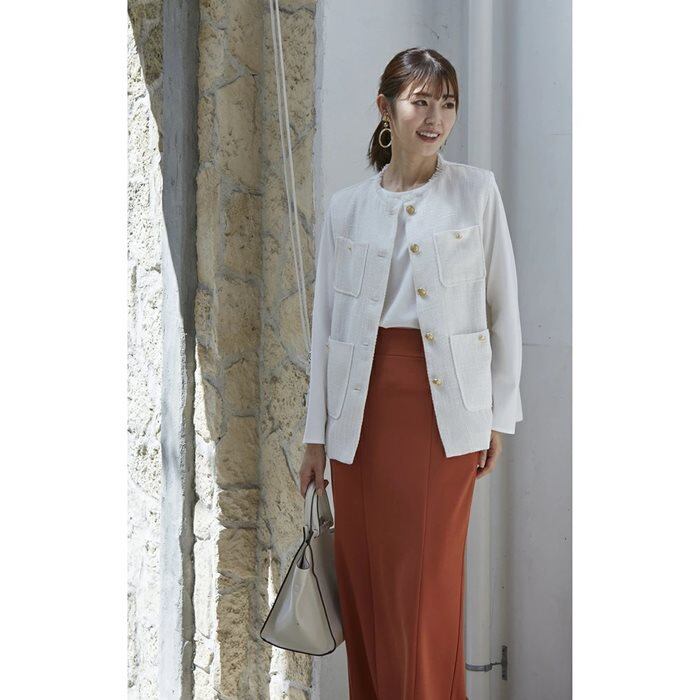 ・ツイード生地に金ボタンでトラッドな気分も。