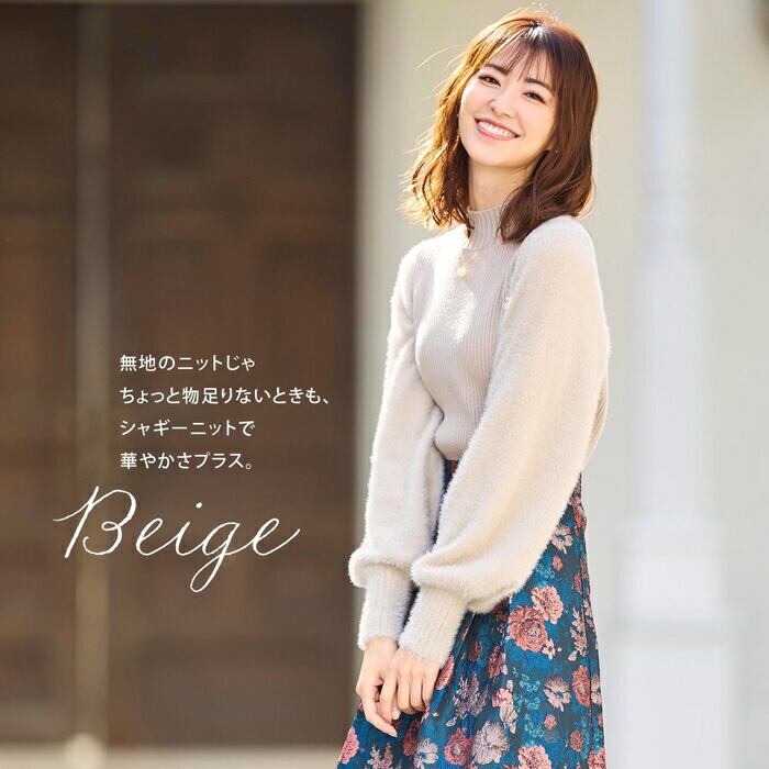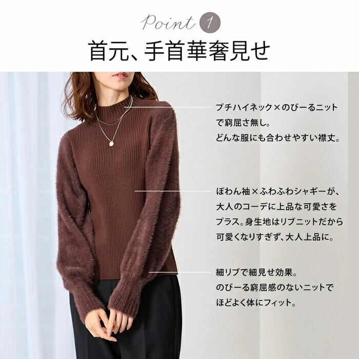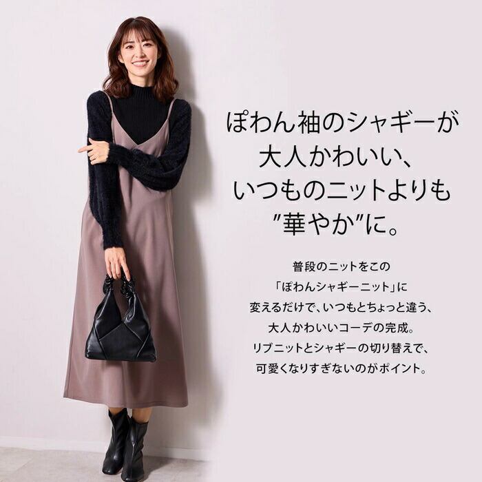 ・ぽわん袖のシャギーが大人かわいい、いつものニットよりも華やかに。