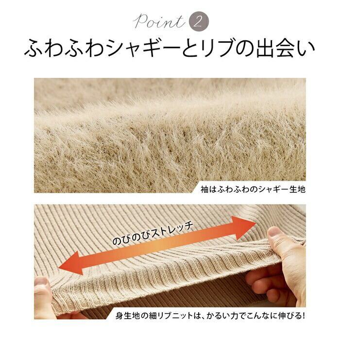 ・リブニットとシャギーの切り替えで、可愛くなりすぎないのがポイント。