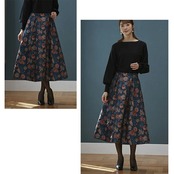 ゴブラン柄タックフレアスカート