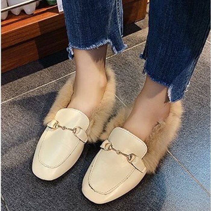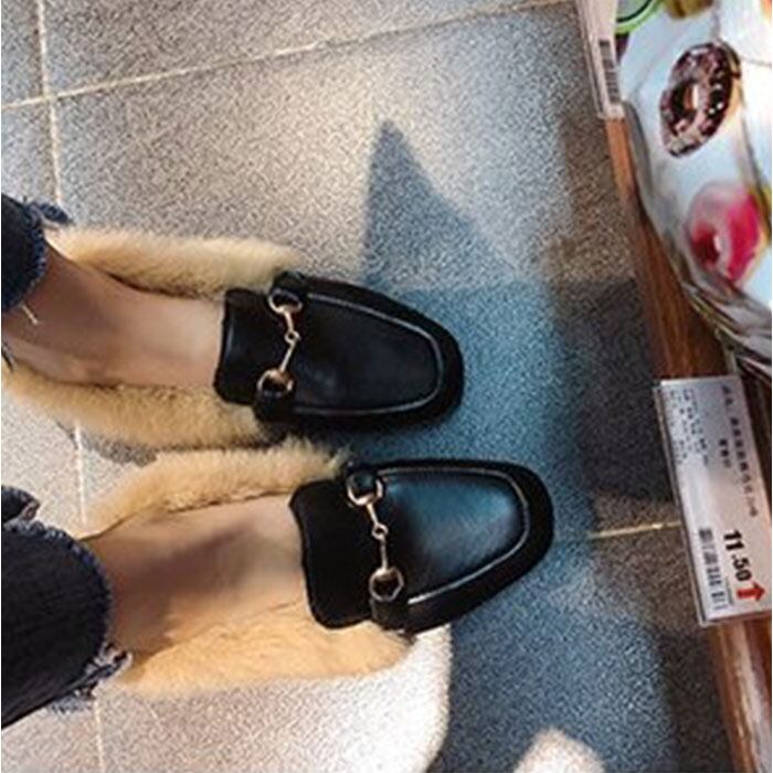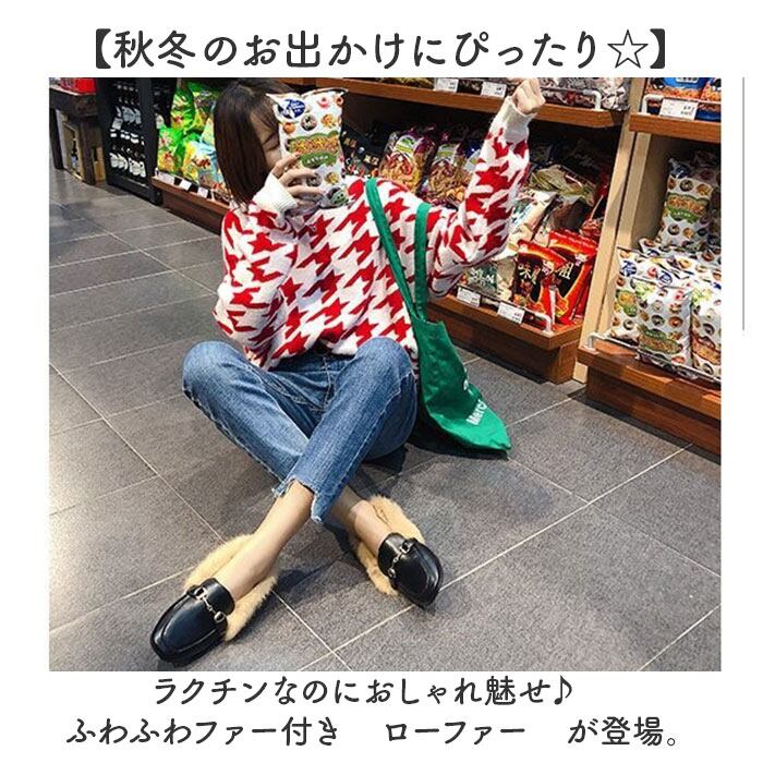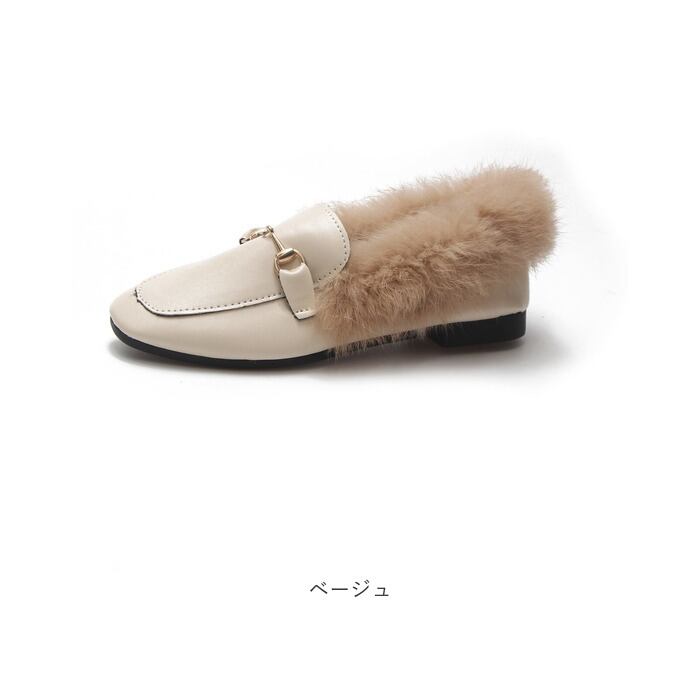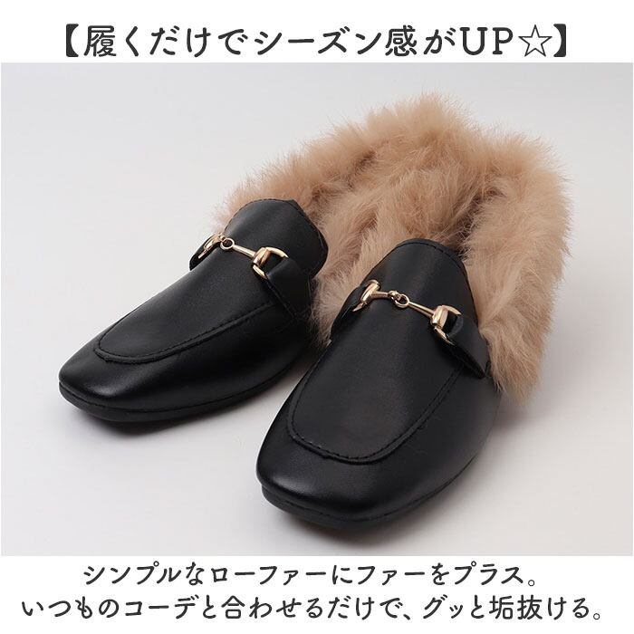 ふわふわファー付きローファー スリッポン