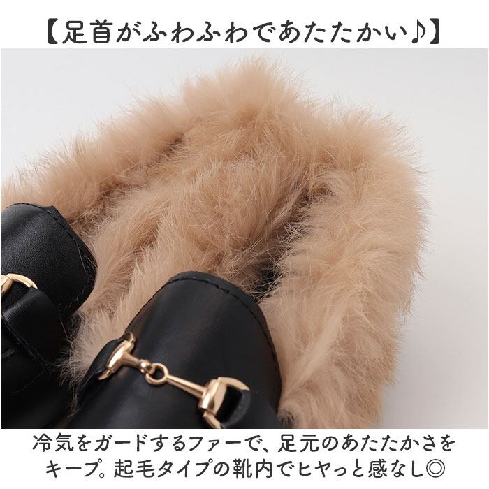 ・冷気をガードするファーで、足元のあたたかさをキープ。起毛タイプの靴内でヒヤっと感なし◎