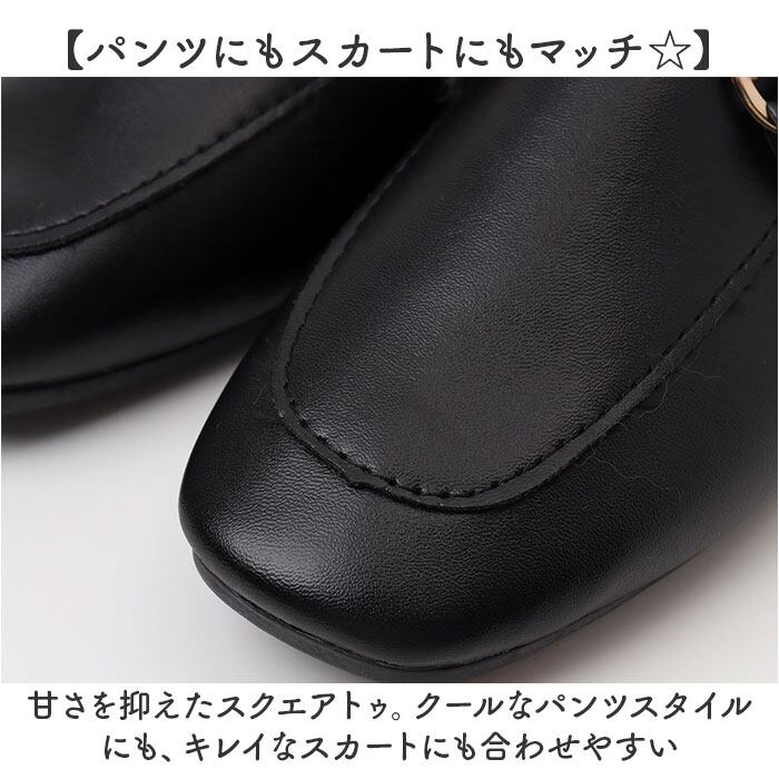 ・甘さを抑えたスクエアトゥ。クールなパンツスタイルにも、キレイなスカートにも合わせやすい