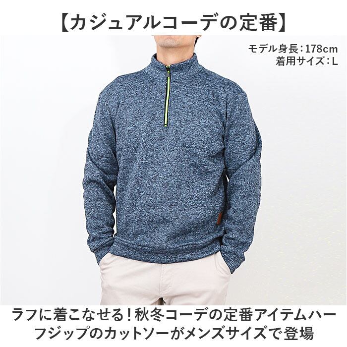 ・ラフに着こなせる!秋冬コーデの定番アイテムハーフジップのカットソーがメンズサイズで登場