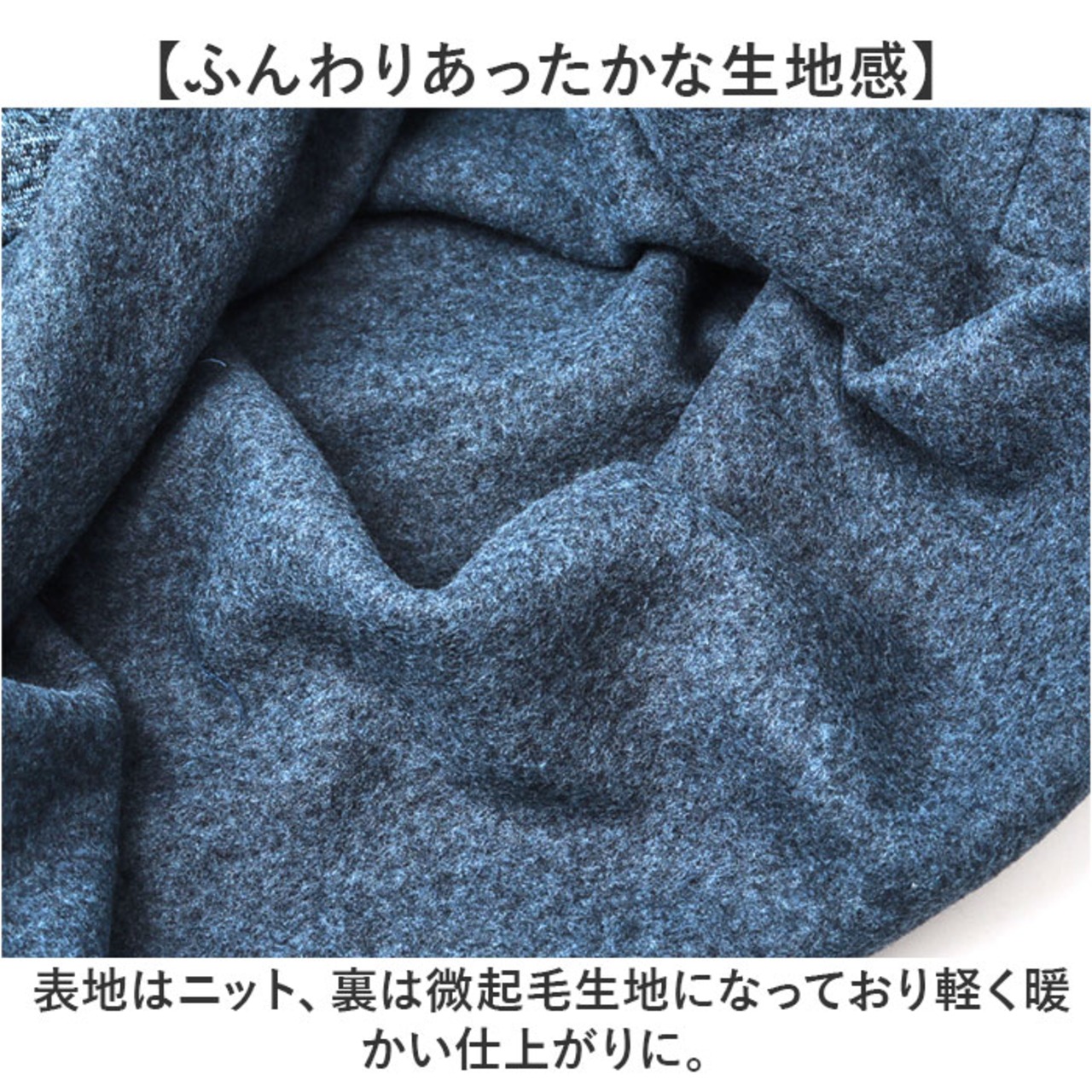 ・表地はニット、裏は微起毛生地になっており軽く暖かい仕上がりに。