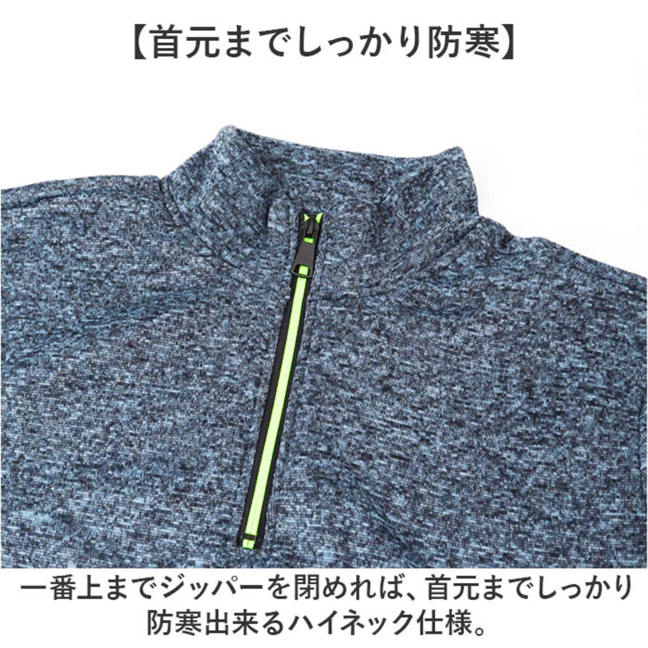 ・一番上までジッパーを閉めれば、首元までしっかり防寒出来るハイネック仕様。