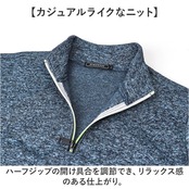 ・ハーフジップの開け具合を調節でき、リラックス感のある仕上がり。