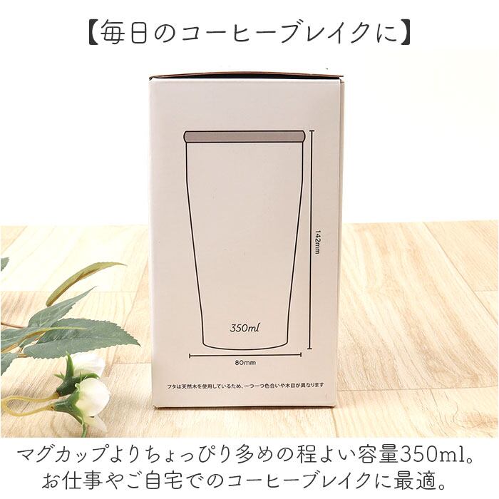 ・天然木のフタは飲み物の熱さによる変形を防ぐコーティング加工を施し、飲み口にピタッとフィット。
